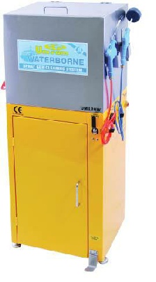 Water-based, single spray gun, manual cleaner with waste water treatment by flocculation.